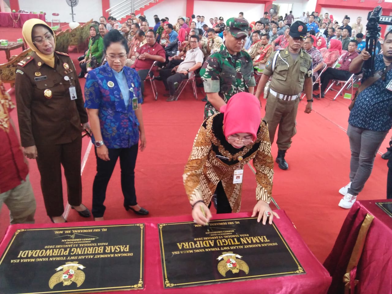 Grobogan – Bupati Grobogan didampingi jajaran pemerintah Kabupaten Grobogan meresmikan sejumlah hasil pembangunan kabupaten Grobogan kegiatan Tahun Anggaran 2019 bertempat di GOR Ir. Soekarno Simpang Lima Purwodadi, Rabu (15/1/2020).