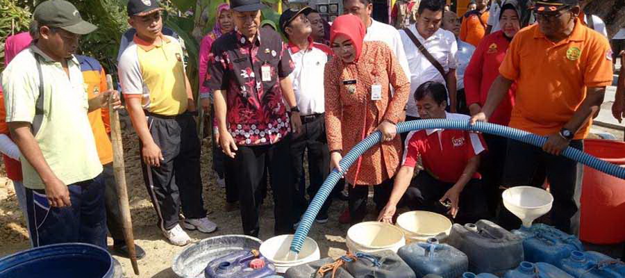 Bupati Grobogan Sri Sumarni melangsungkan monitoring sekaligus menyalurkan bantuan air bersih di di Desa Tunggak, Kecamatan Toroh, Jumat (10/8/2018).